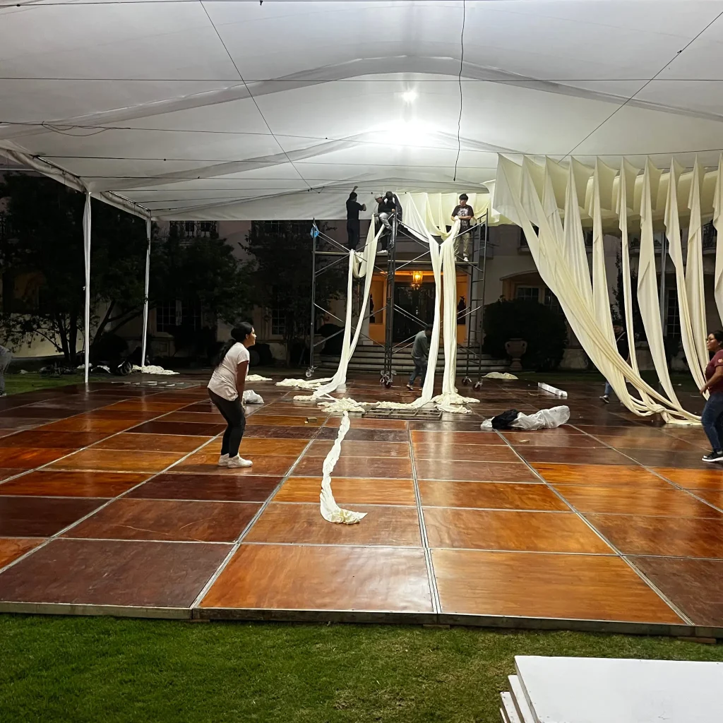 Dale nivel y presencia a tu evento con las tarimas profesionales de Eventos Salazar. Nuestras estructuras son seguras, resistentes y visualmente elegantes, ideales para escenarios, pistas de baile, presentaciones o áreas de exposición. Fabricadas con materiales de alta calidad y un montaje preciso, nuestras tarimas rústicas y charoleadas garantizan estabilidad y estética en cualquier tipo de evento.
